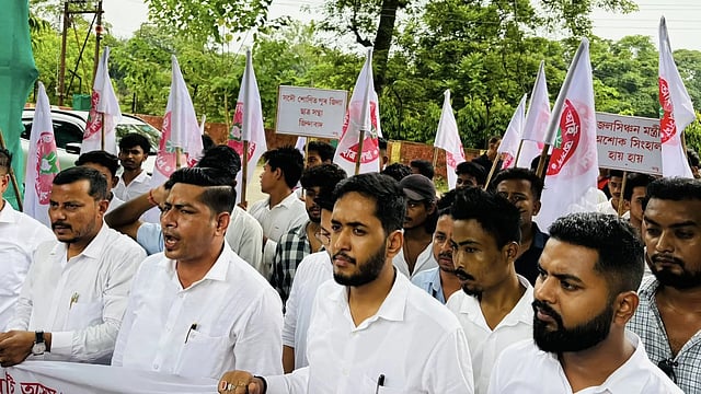 BISWANATH CHARIALI: On the call of All Assam Students' Union, the Biswanath district unit of AASU staged a demonstration in front of the office of the Irrigation Department at Biswanath Chariali on Saturday. They also submitted a memorandum to the Chief Minister through the District Commissioner of Biswanath to resolve the problems of the farmers.