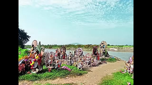 BILASIPARA: Under the aegis of Linguistic Minority Cell of AGP, the Bilasipara branch headed by Mithun Roy immersed the abandoned idols of different gods and goddesses in the Gaurang river observing Hindu religious rituals. The step has been appreciated by people of all walks of life who encouraged Mithun Roy to continue the programme in other places of the state also. On enquiry, Mithun Roy said that Hindus worship different gods goddess, spending lakhs of rupees on their idols, but after worship, a good number of people do not immerge the idols properly and abandon them at roadsides, cremation ghats, etc. places which were odd for the idols. Mithun Roy said that hence he had taken up the programme.