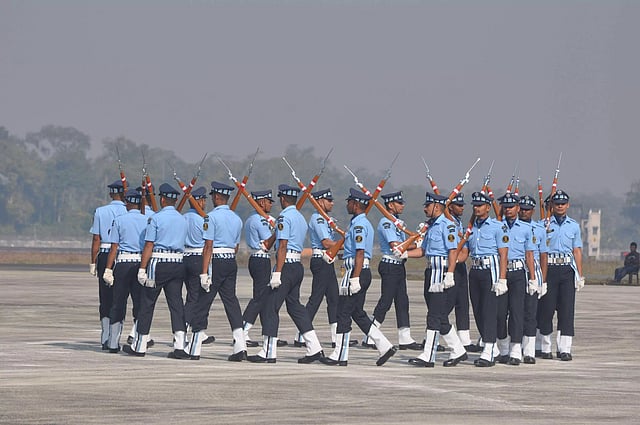 Air Commodore SK Verma, Vishisth Seva Medal, Air Officer Commanding, Air Force Station Jorhat, Alka Verma, president of Air Force Wives Welfare Association (local), personnel, and their families witnessed the impressive drill demonstration performed by the team.