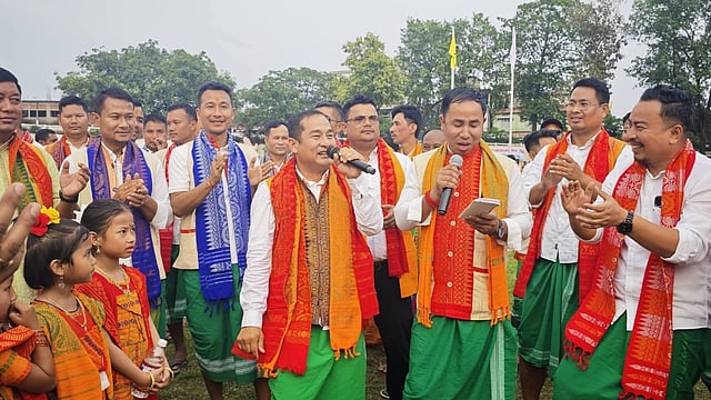 Meanwhile, Rongali Bihu was celebrated across the state with great enthusiasm. Manuh Bihu was observed throughout Assam, while the Bodo community celebrated Rongjali Bwisagu as one of their biggest festivals. On the occasion of Bohag, a community Bathou prayer (Bathou Araj) was also organized at Bathou Thanshali in Baganashali, Kokrajhar town, praying for peace, harmony, and the well-being of families, society, and the nation.