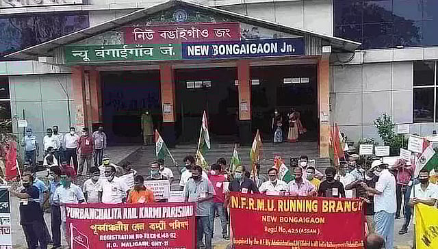 Several organizations including the NF Railway Mazdoor Union, All India Railwaymans Federation, N F Railway Employees Union, Hind Mazdoor Sabha, Indian National Trade Union Congress, Centre of Indian Trade Unions, NF Railway Employees Union, Purbanchaliya Rail Karmi Parishad, and Pensioners' Association participated in the protest.