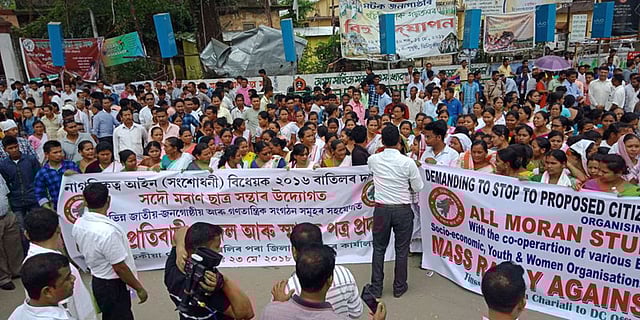 TINSUKIA, May 24: The ongoing signature campaign, targeting one lakh signatures, against the proposed Citizenship (Amendment) Bill, 2016, started by the All Moran Students’ Union (AMSU) has received wide support. The union has collected 50,000 signatures till date with 15,000 memoranda submitted during a huge public rally organized at Tinsukia on Wednesday. The rally was participated by AJYCP, Bhujpuri Students’ Union and Gorkha organization, besides all organizations of Moran community. The small tea growers as a mark of protest stopped plucking of green leaves for a day while e-rickshaws provided a commendable service by ferrying protesters to the DC Court free of charge, said Arun Jyoti Moran, president of AMSU, adding further that their agitation would continue in a phased manner till the Bill was withdrawn. Meanwhile, Congress workers also took to the streets in protest against the controversial Bill in Tinsukia on Wednesday.