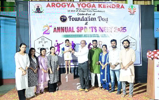 NAGAON: The 2nd Annual Sports Meet and the 8th foundation day of Arogya Yoga Kendra, Dhing, a unit of Arogya Care Foundation, was celebrated from April 2 to April 4, in collaboration with DCSU Sports Wings, with vibrant participation and enthusiastic performances of students in various events. The grand event featured competitions in yoga, quiz, speech, race, badminton, carrom, chess, and more, promoting physical and mental wellness.