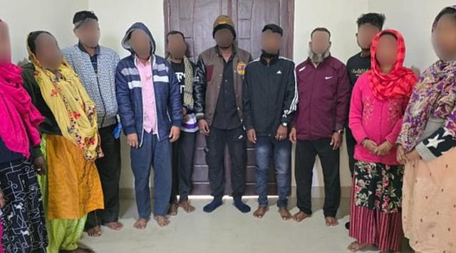 The arrested individuals were identified as Md. Mehdi Hasan, Chand Mia, Rumana Aktar, Md. Rizwan Hawaldar, Jamal Sk, Beauty Begum, Munni Begum, Nushrat Zahan, Rustom Sk, Rubel Qureshi, and five children.