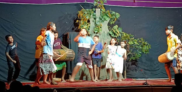 JAMUGURIHAT: The 20-day-long drama workshop organized for the children by Bahbari Kolaguru Branch of Asam Natya Sanmilan concludes successfully with staging of a contemplative children drama “Noi Poria Khadhu” by a group of budding talent at the closing function of the 20-day-programme at Khelmati High School in Sonitpur district in the evening on August 2.