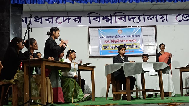 LAKHIMPUR: A debate competition and a youth parliament competition were organized at Madhabdev University, located at Narayanpur of Lakhimpur district on Thursday under the Debate and Performing Art Section of the University Students’ Union as part of the “Varsity Week”. The competitions were held under the management of Debate and Performing Art Section secretary Tanmay Baruah. The Topic of the debate competition was: According to the House, “Mother tongue medium education is the best path to the holistic development of the students”. Court Member Bedanta Hazarika took part in the debate competition as speaker. On the other hand, journalist-writer Ranjit Kakati, who was also a debater, and Dulen Kumar Gogoi, Assistant Professor of Economics at Lakhimpur Girls’ College shouldered the responsibility of judges in the both competitions. Gayatri Bhuyan managed to win the first prize in the debate competition while Manasi Gogoi grabbed the second prize. Nabajyoti Saikia secured the third prize. On the other hand, Department of Political Science won first prize in Youth Parliament competition while Department of Sociology and Department of History managed to grab the second and third prize respectively in the Youth Parliament competition.