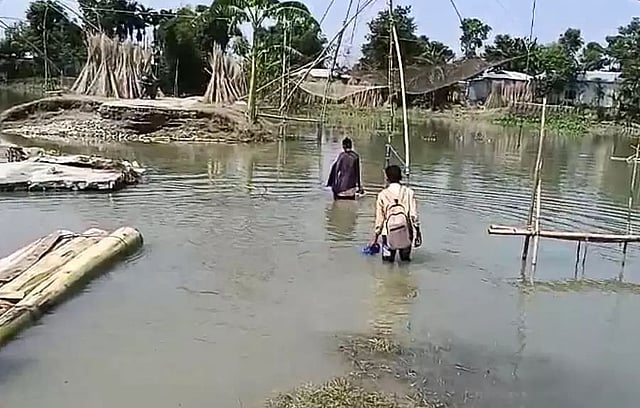 BARPETA: Villagers of Sukhuwarjhar Mahishkhuti area in the Barpeta district are facing massive problems after the recent flood washed away a big portion of a road connecting to the area. According to the locals, the recent flood has also damaged several roads in the area.