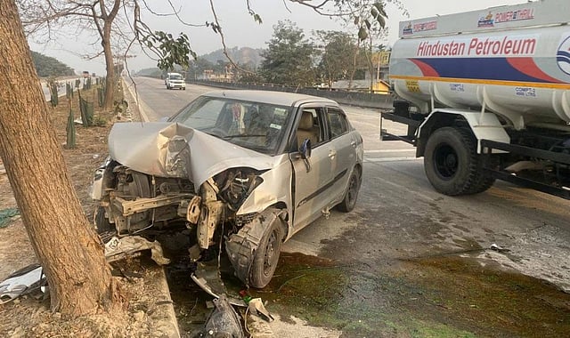Bongaigaon: A road accident took place near the flying bridge of Chaparakata in Bongaigaon district when a four-wheeler lost control and crashed into a tree on the roadside. However, no injuries were reported due to the accident.