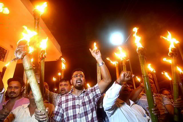 NAGAON: The District Unit of Assam Jatiyatabadi Yuva-Chatra Parishad, organized a protest rally in Nagaon town on Saturday evening to demand the repeal of the Citizenship Amendment Act (CAA) as well as the Illegal Migrants (Determination by Tribunal) Act.