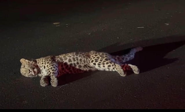 DIBRUGARH: An adult leopard was run over by a speeding vehicle at 2 No. Ghoronia in Naharkatia area of Dibrugarh district on Thursday evening. According to eyewitnesses, the leopard was crossing the road when a speeding vehicle hit the animal.
