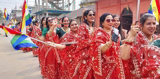 DIBRUGARH: A colourful procession was taken out in Dibrugarh on the occasion of Mahavir Jayanti today. The devotees took out a grand procession from Graham Bazar Jain Mandir which passed through the main street of Dibrugarh. The Jain community participated in the procession holding religious flags. The New Market Jain Mandir also took out a procession in Dibrugarh.