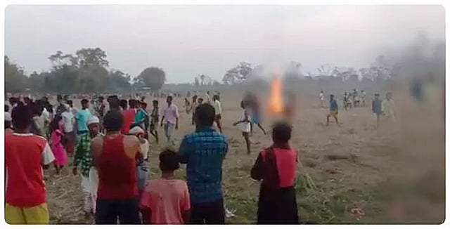 Following the incident, a furious mod went on to attack Sunil Tanti with a sharp weapon and rods and set him on fire. The unidentified mob taking advantage of the situation attacked the man.