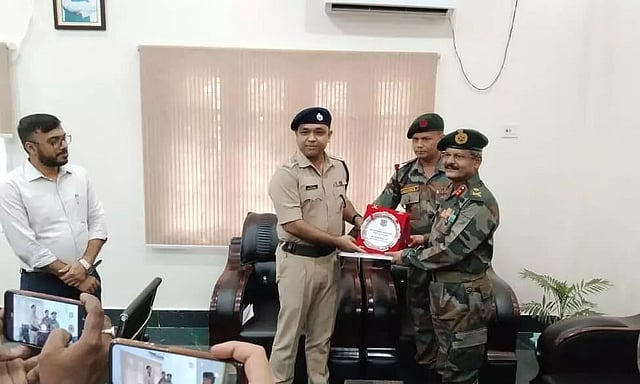 During the meeting, Bhaskar Kalita was briefed about the current aspects of the Chirang district. Chirang Deputy Commissioner Narendra Kumar Shah and Superintendent of Police Pranjit Borah greeted the Army officer with aronai and a bouquet of flowers.