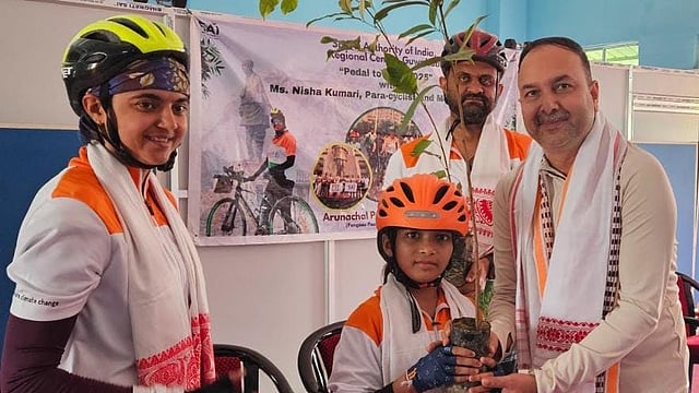 DIBRUGARH: Under the initiative of the Fit India Movement, launched by Prime Minister Narendra Modi in 2019, Nisha Kumari, a distinguished para-cyclist and mountaineer currently undertaking a cross-country campaign titled ‘Pedal to Plant 2025,’ visited Sri Sri Aniruddhadeva Sports University (SASU), Dibrugarh, on Monday.