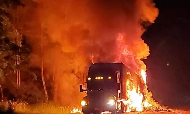 The vehicle was set on fire by unidentified individuals just in front of the Pulibor police station in Assam's Jorhat district. The pick-up truck was reportedly bearing registration number AS-03-AC-3475.