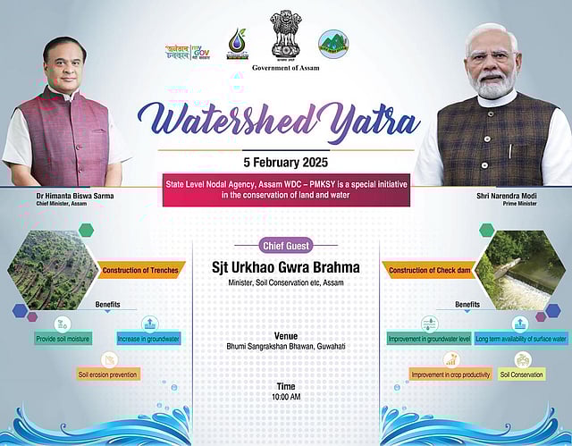 GUWAHATI: A special event called the Watershed Yatra was held today at the Bhumi Sangrakshan Bhawan in Guwahati. This event is focused on land and water conservation and is organized under the Assam WDC - PMKSY. It was earlier reported that Assam Minister UG Brahma will attend the event as the chief guest.