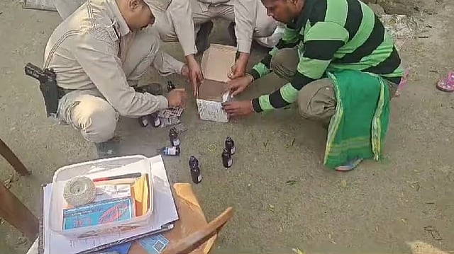 Acting on a tip-off, police raided a residence and seized ten bottles of illicit cough syrup along with eight packets of intoxicating tablets.