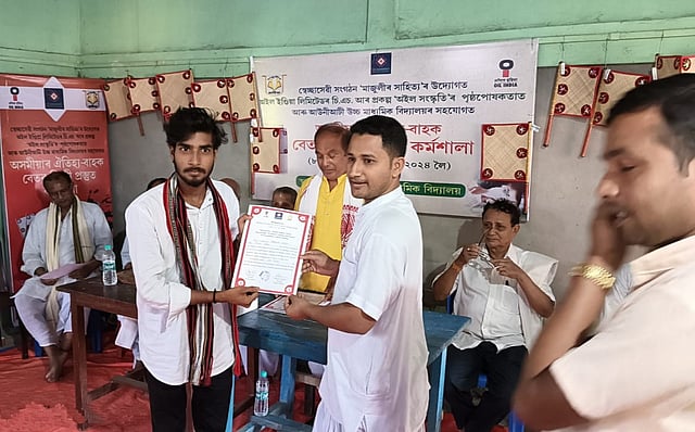 Speaking on the occasion, as guest of honour, Herombo Prasad Hazarika of Auniati Xatra said that the initiative taken by Majulir Xahitya under the sponsorship of Oil India Limited, Duliajan to enhance the cane fan making industry by organizing the workshop would be scripted in the history of the xatra with golden letters. The meeting was also attended by Nabin Bora Bayon and Lalit Bora Majinder on behalf of the xatra. Social worker Jugal Bhuyan praised the initiative and urged all to continue the cane fan making culture. On behalf of the trainees, Moon Saikia and Pawanjyoti Bora, Bipul Barua, Madhurya Sarma and several others shared their experiences and feedback of the workshop. In the same meeting everal important resolutions were adopted. The meeting urged the Government of Assam to grant Silpi Pension (Artiste Pension) to the cane fan making artistes.