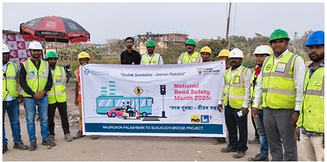 As part of its corporate social responsibility initiatives, the construction firm, Larsen & Toubro (L&T), organized a Road Safety Awareness Programme on January 28 at both ends of the bridge—Majirgaon and Sualkuchi—with the objective of preventing road accidents in the construction zone and surrounding areas.
