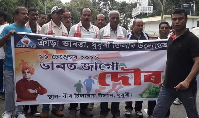 DHUBRI: ‘Bharat Jago Daur’, Along with rest of the country (Run to Awake India) was organized here by the Dhubri district unit of Krira Bharati on Wednesday to commemorate Swami Vivekananda’s speech in Chicago on September 11, 1893.