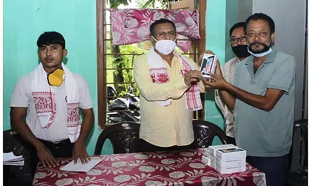BISWANATH CHARIALI: As many as 37 Gaon Burhas (village headmen) of Biswanath and Sakomatha mouzas under the Biswanath Legislative Assembly Constituency were distributed smartphones on Thursday by Biswanath MLA Pramod Brthakur at a meeting held in the office of Biswanath District Gaonburha Association.