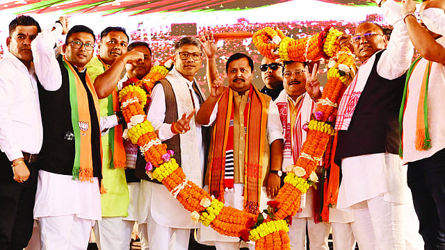 BJP National President Nitin Nabin addressed a large election rally in Deusal, Jagiroad on Monday in support of party candidate Piyush Hazarika, who is contesting from the 52 No. Jagiroad constituency in the upcoming Assam assembly elections.
