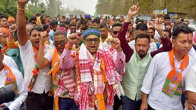 Defying wet weather, thousands of supporters gathered at Gobardhan in Chaygaon to welcome him with traditional Bihu husori, Bodo and Rabha dances, and devotional naam-kirtan — a display of cross-community enthusiasm that set the tone for the day.