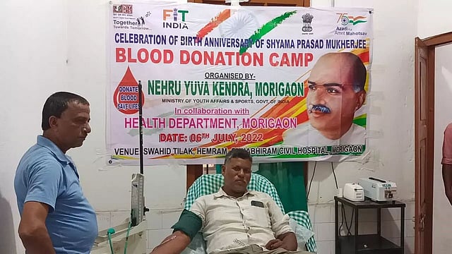 MORIGAON: A blood donation camp on the occasion of the birth anniversary of Shyama Prasad Mukherji, was organized by Nehru Yuva Kendra, Morigaon, in collaboration with the Health department, Morigaon at Swahid Tilak, Hemram, Gunabhiram Civil Hospital, Morigaon on Wednesday.