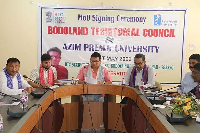 KOKRAJHAR: The ceremonial signing of the MoU between the Bodoland Territorial Council (BTC) and the Azim Premji University (APU) was held in the conference Hall of 3rd Floor, BTC Secretariat, Bodofa Nwgwr Kokrajhar, BTR on Saturday which was chaired by BTR CEM Pramod Boro along with EM Arup Kr. Dey, EM Dhananjoy Basumatary with Manoj P., Registrar of Azim Premji University (APU) and his team.