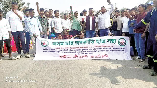 The protest was organized by the Golaghat District Committee of the Assam Tea Tribes Students’ Association (ATTSA), with the support of its Khumtai branch and local residents. Demonstrators staged a strong protest in front of the Khumtai police outpost, resulting in temporary disruption of traffic along Dhodar Ali.