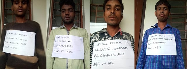 Apprehended cattle smugglers were identified as (a) Karim Uddin,(19 Yrs), S/o Rahem Ali, R/o Vill- Kokradanga, PS -Kharuabandha, Distt- South Salamara (Assam), (b) Rijauk Karim, (20 Yrs), S/o Md Rasul, R/o Vill- Dewaneralga, PS -Sukhchar, Distt-South Salamara (Assam), (c) Hanif Sheikh,(20 Yrs), S/o Sahajan Sheikh, R/o Vill- Dewaneralg, PS –Sukhchar, Distt-South Salamara (Assam) and (d) Asmot Mullah,(19 Yrs), S/o Ardash Ali, R/o Vill Dewaneralga, PS -Sukhchar, Distt- South Salamara (Assam). Later, they have been handed over to PS Kharuabandha for further legal action.