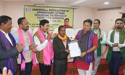 KOKRAJHAR: The Chief Executive Member of BTC Pramod Boro on Friday ceremonially distributed appointment letters to 95 Central Selection Board (CSB) recommended candidates for regularization of their services at a function held at Assembly Auditorium Hall, Bodofa Nwgwr, Kokrajhar.