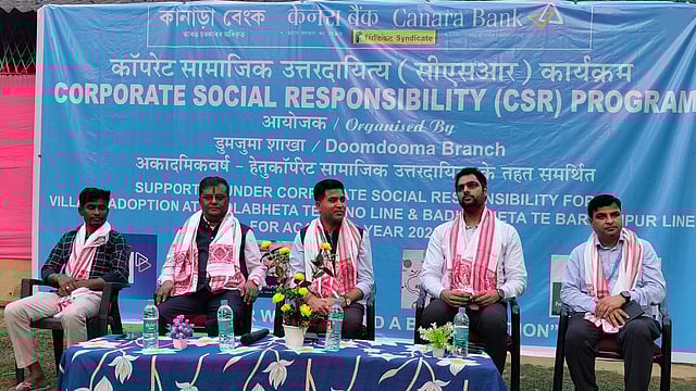 Also present were Divisional Manager Mayur Jayaraman, bank official Sarvesh Tiwari, and a large number of tea garden workers and local residents. The programme was conducted by Gagan Kumar Deori, Branch Manager of Canara Bank's Doomdooma branch.