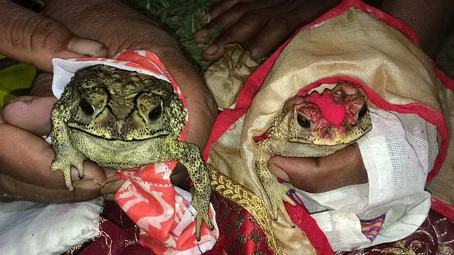 NAZIRA: In Charaideo district, farmers are facing a severe water crisis, and the irrigation system has become ineffective. The machinery and pipes have rusted, leaving agricultural lands dry even during the monsoon season. With hundreds of bighas of land at risk of going fallow, the farmers resorted to a traditional ‘frog marriage’ ceremony to pray for rain.