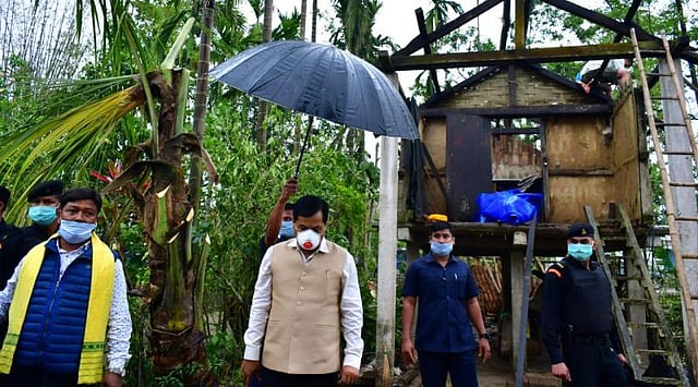 GUWAHATI: As the seasonal storm battered parts of Lezai area of Moran in Dibrugarh district of Upper Assam, Chief Minister Sarbananda Sonowal on Friday braving inclement weather visited the storm hit areas of Lezai and talked to the affected people.