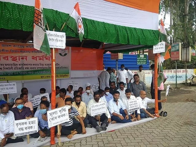 TINSUKIA: The Tinsukia District Congress Committee, as per instruction of the Assam Pradesh Congress Committee (APCC) organized a two-hour sit-in at Thana Chariali in Tinsukia on Thursday to register its protest against price hike, non-enhancement of tea garden daily wage to Rs 351/day, failure to keep election promises and assurance to provide yearly 5 lakh jobs to unemployed youths, besides other issues like violence against women. APCC observer Pranjal Ghatowar, State Chief Organizer of Sewa Dal, Sukanta Bhattacharjee, and district president Jivan Kurmi addressed the Congress workers. All vice-presidents and general secretaries, secretary, other members of DCC were present along with members of district NSUI and Mahila Block Congress. The APCC Gorkha State general secretary Ashok Sharma also addressed the gathering.