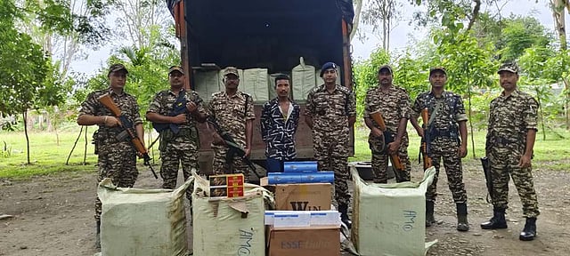 142 Bn CRPF sources said that a special Mobile Naka Duty was executed on Merapani-Golaghat Road, falling under D Sector, DAB. During the operation, a suspected Tata Truck (06-wheeler) bearing Registration No. AS-01-BC-7088 was chased and intercepted near Adarsha Village, under the jurisdiction of PS Merapani, D Sector, DAB. Upon thorough inspection, the vehicle was found to be transporting a large quantity of foreign-made cigarettes, concealed in plastic bags. Cigarettes (Gudang Garam Brand) 29 cartons containing 4,17,600 cigarette sticks, cigarettes (WIN Brand) 82 cartons containing 8,20,000 cigarette sticks, Cigarettes (Esse Lights Brand) 49 Cartons containing 4,90,000 cigarette sticks, Vivo Smart Handset with 1 SIM Card were seized from the vehicle. In this regard Babatu Gogoi, aged 31 years (driver of the vehicle), were handed over to PS Merapani in Golaghat district for further legal action.