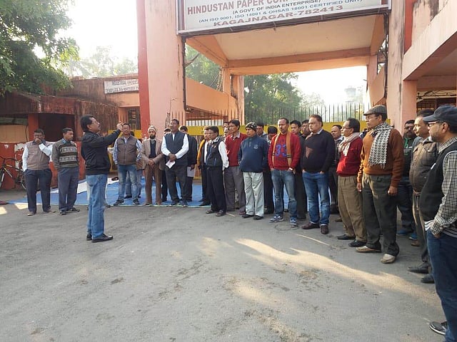 JAGIROAD: The Kagaj Nigam Karmi Union (KNKU) of Nagaon Paper Mill on Wednesday staged protest in front of the main gate of the mill. The protest was staged in support of the call of the All India Trade Congress against the ‘anti-labour’ policy of the Central Government. The KNKU urged the Central and State governments to revive both the Nagaon Paper Mill and Cachar Paper Mill at the earliest and to release the monthly salary of the employees pending since the last 22 months. The employees also criticized the Central and State governments for their failure in reviving both the paper mills and threatened of drastic consequences in the Lok Sabha election.