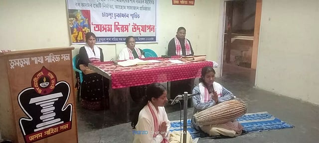 DOOMDOOMA: The Axom Divas to commemorate great Ahom King Swargadeo Chaolung Siu-Ka-Pha was observed by Satadol Doomdooma Sakha Xahitya Xabha in association with Asam Jatiyatabadi Yuva Chatra Parishad (AJYCP), Azad Road Branch on Saturday. The meeting was presided over by President Bimala Baruah, followed by a Borgeet composed by Madhavdev and rendered by Kakoli Kalita. Thereafter, the Secretary, Deben Deka, explained the objectives of the meeting.