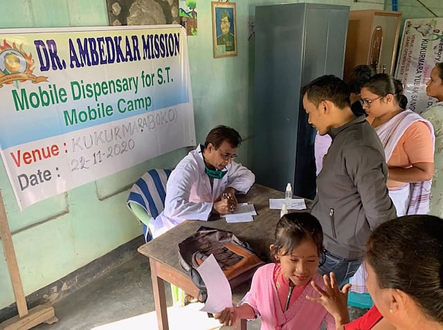 BOKO: Dr. Ambedkar Mission temporarily set up a mobile dispensary for health check-up in a remote village named Kukurmara in Boko, Kamrup District on Sunday. President of the Dr. Ambedkar Mission said the motive is to check-up sick people of the remote SC villages. During the program, doctors and nurses and other medical staff checked the health of the villagers and distributed free medicines among them. More than 200 villagers were benefited from this free health camp.