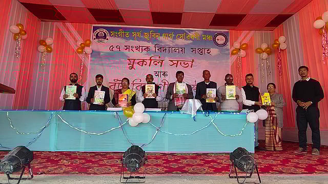 JAMUGURIHAT: The annual sports week and annual day function of PM Shri Dekorai Higher Secondary School, one of leading schools of secondary education located at Itakhola under Biswanath district culminated on Wednesday with unveiling of eight handwritten magazines altogether. The eight hand written magazines were unveiled on the eve of the colorful opening session and prize distribution ceremony of the school week by Ghana Bora, a retired teacher of the school and a prominent personality of Itakhola in the presence of invited guests, students, and parents. The chief inaugurator remarked that the beautiful tradition of the school's handwritten magazine publication has created a positive environment of intellectual consciousness among the students, and advised that Dekorai Higher Secondary School, a leading educational institution in the Itakhola region, should continue to provide social leadership through such activities. These handwritten magazines have been prepared under the supervision of chief coordinator Sharat Jyoti Saikia and the respective class supervisors. The magazines from Class VI to Class XII sequentially titled as 'Alati' (Class VI), 'Adhiti' (Class VII), 'Aakar' (Class VIII), 'Anweshan' (Class IX),