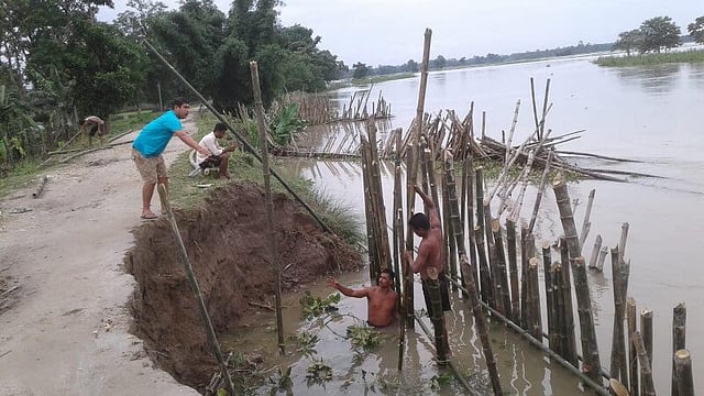 LAKHIMPUR: Due to incessant downpour for over a week and alleged dereliction of the Water Resources Department towards shouldering its responsibilities on time, the present wave of flood caused by various rivers has put the people of Dhakuakhana subdivision in a miserable condition. Simultaneously, massive river erosion has also posed as an alarming threat to them in various parts of the subdivision.