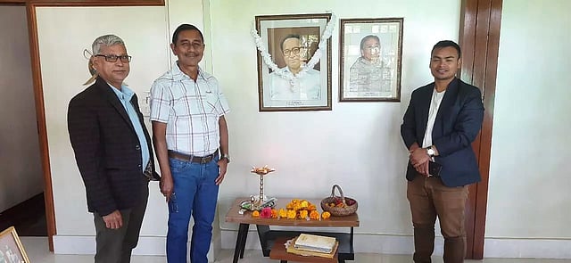 HAFLONG: The 90th birth anniversary of Jatindralal Thaosen, father of Dimasa language, was observed at his Haflong residence on Wednesday in a solemn way. His eldest son Ajoylal Thaosen offered floral tribute at the portrait of Jatindralal Thaosen.