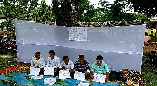 The aggrieved students further added that they had gone to Ghilamora Police Station in order to file a case few days ago. But the OC of the PS refused to lodge any FIR against the controversial principal, allegedly favouring him. Then on Monday, the students initiated hunger strike until death from 6 am as a mark of protest and to demand justice. However, they put on hold the programme at the interference of David Borah, the Election Officer of the Dhakuakhona subdivision, who arrived at the spot as the representative of Lakhimpur DC and Dhakuakhona SDO, and promised to act on their complaint within 15 days. But not seeing any development in the case, the deprived students submitted the FIR to the SP of the district, in addition to calling on the DC too.