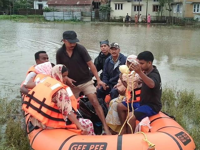 The rising water levels have also breached an earthen embankment in Garubandha-Bishnupur area of Darrang district on Sunday causing immense hardship to the villagers. The personnel of Fire and Emergency Services, Kalaigaon also rescued one family from Singimari village under Kalaigaon revenue circle on Monday.