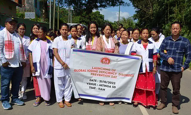 Speaking on the occasion, Dr Marina Changsan, District Immunization Officer, briefed about certain diseases that might be caused due to iodine deficiency in people, even pregnant women. She said that iodine deficiency could be easily prevented. She also said that iodine deficiency could lead to a variety of health and developmental consequences known as iodine deficiency disorders (IDDs). Iodine deficiency is a major cause of preventable mental retardation. Iodine deficiency is especially damaging during pregnancy and in early childhood. In their most severe forms, IDDs can lead to cretinism, still birth and miscarriage; even mild deficiency can cause a significant loss of learning ability. Joint Director in-charge Dr Kalpana Kemprai also spoke about the preventive measures for iodine deficiency disorder. At the end of the programme, an awareness rally was held at Jatinga in which health workers, students and teachers participated.
