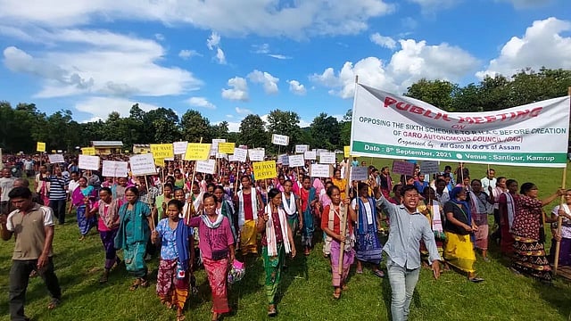 During the meeting, people took out a protest rally to demand Garo Autonomous Council instead of Garo Development Council. The rally started from GNC Santipur office to Santipur Chok and returned to office.