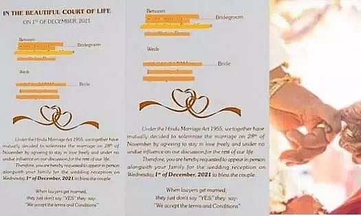 Interestingly, the card also mentions the laws and rights related to marriages in the country. The wedding card reads, "The right to marry is a component of Right To Life under Article 21 of the Indian constitution. So, it is time for me to use this Fundamental Right on Sunday 28th November 2021," as reported by Times Now.