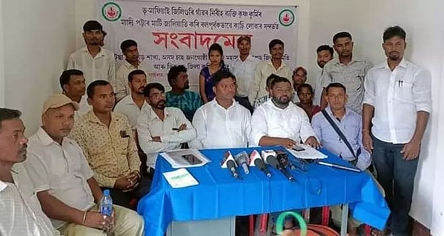 "The land mafia forcefully grabbed 6 bigha land of Krishna Kurmi at Jiliguri Gaon under Lahowal constituency of Dibrugarh. In 2012, the land mafia threatened Krishna Kurmi and took his signature in a piece of paper and on March 17, 2014, they made the stamp paper. The land mafia had forged the myadi patta land and forced the poor worker to give his signature," ATTSA leader Kurmi alleged.