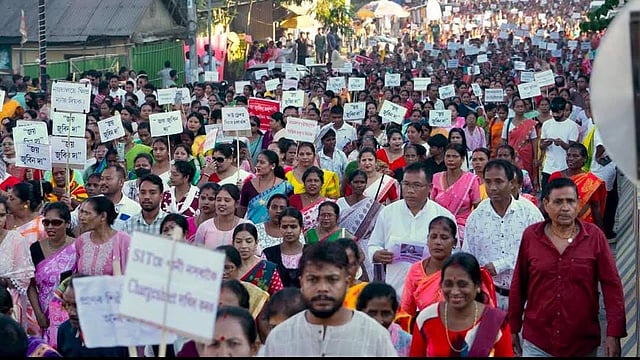 Over thousands of members from BJP hit the streets of Dibrugarh holding banners, portraits, and placards bearing Zubeen’s face.